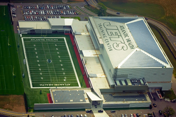 The New York Jets’ training center requested 3,000 solar panels be installed by SunDurance on nearly every square-inch of rooftop available.