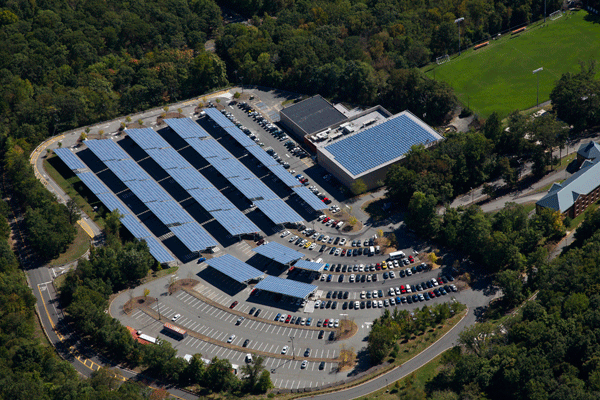 William Paterson University took advantage of under-used space by installing 2.7 MW of solar power on rooftops and on elevated parking lot canopies.